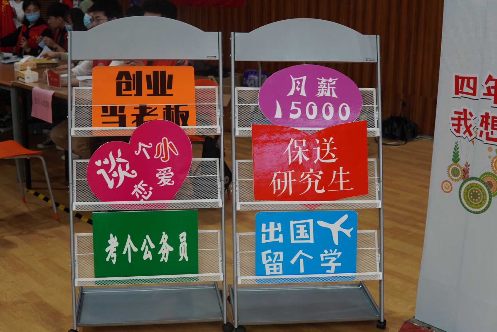 在yl6809永利官网迎新点合影留念板格外引人注目,“保送研究生”“创业当老板”“月薪15000”“出国留个学”“考个公务员”“谈个小恋爱”六个“小目标”启发新生一进校就树立自己的奋斗目标,并在未来四年中不断努力去实现自己的梦想。