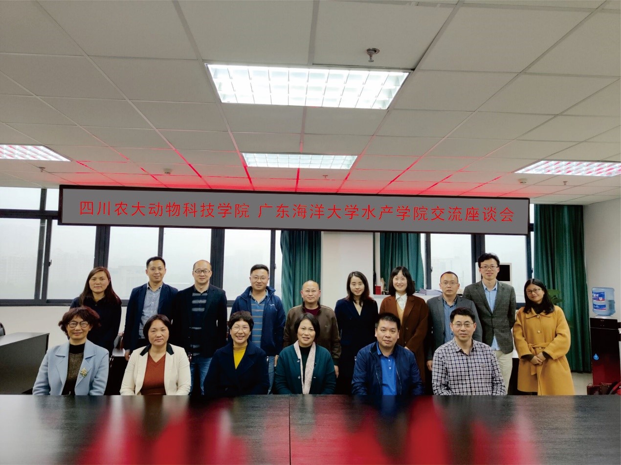 4月9日,广东海洋大学水产学院李广丽院长一行来院交流座谈,座谈会在7-1012会议室举行。学院党委副书记兼纪委书记朱砺教授、水产系全体老师出席座谈会。会议由学院党委书记付瑞琼主持。