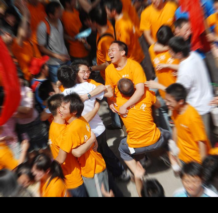 动科院拔河队一路过关斩将,与经管院会师决赛。决赛是在四教后面的篮球场上举行的,现场红旗招展,鼓声、欢呼声、口号声震天作响,球场上全是双方的啦啦队和前来观赛的其他学院的同学,球场边的树上和教学楼的窗口全都站满了人,以至于时任副校长的张强老师是站在一辆工程车的吊斗里才拍下了至今仍在学校招生宣传册上使用的一张拔河比赛的经典相片。比赛开始后,双方实力相当,两局都是1分钟左右才分出胜负,各赢了1局,关键的第三局由两个学院抽签选择场地,当时动科院的学生会主席白海涛师兄猜中了硬币,挑选了大家认为稍微有优势的一边场地,经过前两局的比赛,运动员体力消耗太大,第三局开始30秒后双方队员都没有绝对的力量拔动对方,绳子一晃,两边的队员全都倒坐在地上,手里死死的攥着绳子,拔河绳上的“红领巾”始终在中线附近一动不动,比赛中倒地的情况是之前专门训练过的,也都有专门的应对方法,啦啦队跟着领喊改变了节奏,但是队员们已经站不起来,执行不了平日训练有素的技术动作,双方就这么一直僵持到90秒比赛时间结束,最终因“红领巾”在靠近我们这边不到5厘米,动科院获得了冠军。所有的拔河队员们、学院领导和老师、啦啦队员、后勤队员拥抱、怒吼、振臂挥拳,释放着全部的激情,那场面让我至今难忘,每每想起依然心潮澎湃。那届校运会拔河比赛的现场气氛、激烈程度应当是永远的经典。到现在我还记得一些运动员的名字,范瑞杰师兄,王钰刁师兄,曾捷师姐,晏磊师兄,寇洁师姐,还有我们年级的夏得雨、杜山泉、曾知遥、童山峰、田尧夫、吴晓燕等等都成了当时动科院的英雄。