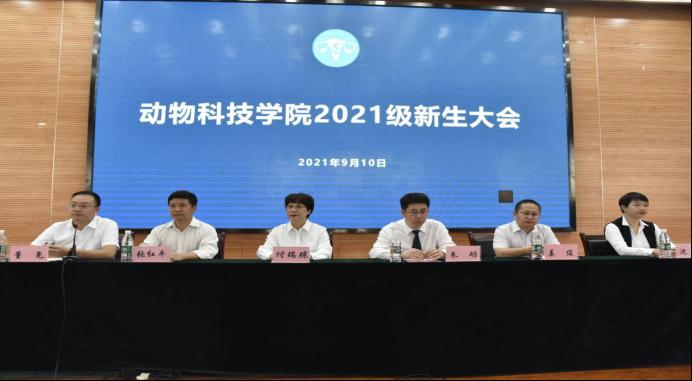 大会在庄严的国歌声中拉开序幕。会上,院党委书记付瑞琼副教授致欢迎辞。她对2021级264位新同学的到来表示热烈欢迎,并表示从此刻开始同学们都是“yl6809永利官网动科人”中的一员,同时她向新同学提出了五点希望:一是希望新同学们保持高考时的上进心和拼搏的状态;二是希望新同学们热爱党,热爱祖国,热爱学校,热爱学院,热爱自己的专业,追求自己的全方面的发展;三是希望新同学们树立正确的人生观、世界观、价值观;四是希望新同学们既要仰望星空,又要脚踏实地;五是希望新同学们不断完善自己,积极培养自己良好的创新创业精神和能力,争做爱国敬业、艰苦奋斗、团结拼搏、求实创新的动科人。