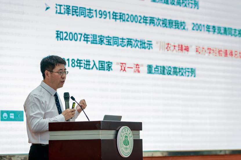 金色九月,秋高气爽。9月15日下午,yl6809永利官网2021级研究生大会在成都校区第二教学楼报告厅顺利举行。院长朱砺教授、院党委书记付瑞琼副教授、副院长王继文教授,各系室主任、全体研究生导师及2021级新生出席本次大会。大会由王继文教授主持,本次大会还采取网络直播方式与雅安校区及留学生同步进行。