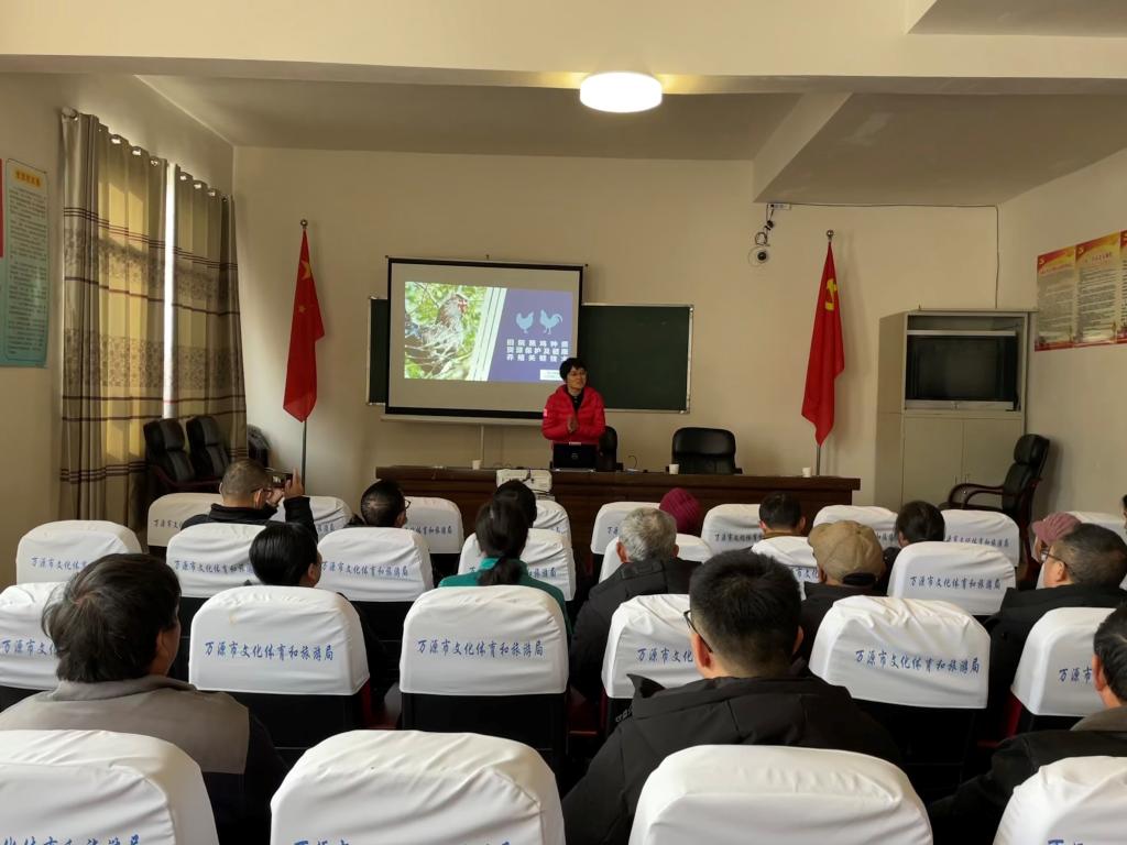 赵小玲前往四川省省级资源保种场、四川省核心育种场万源市恒康农业开发有限公司调研,跟进了解公司对旧院黑鸡保种群体饲养和数据记录情况,指导公司场地改建布局,及时补充完善需上报的遗传资源数据。调研结束后,赵小玲在太平镇邱家坪村以“旧院黑鸡种质资源保护及健康养殖关键技术”为题,对达州市畜牧技术推广站推广员、公司员工和养殖户、村干部进行了通俗易懂的讲解培训、答疑。