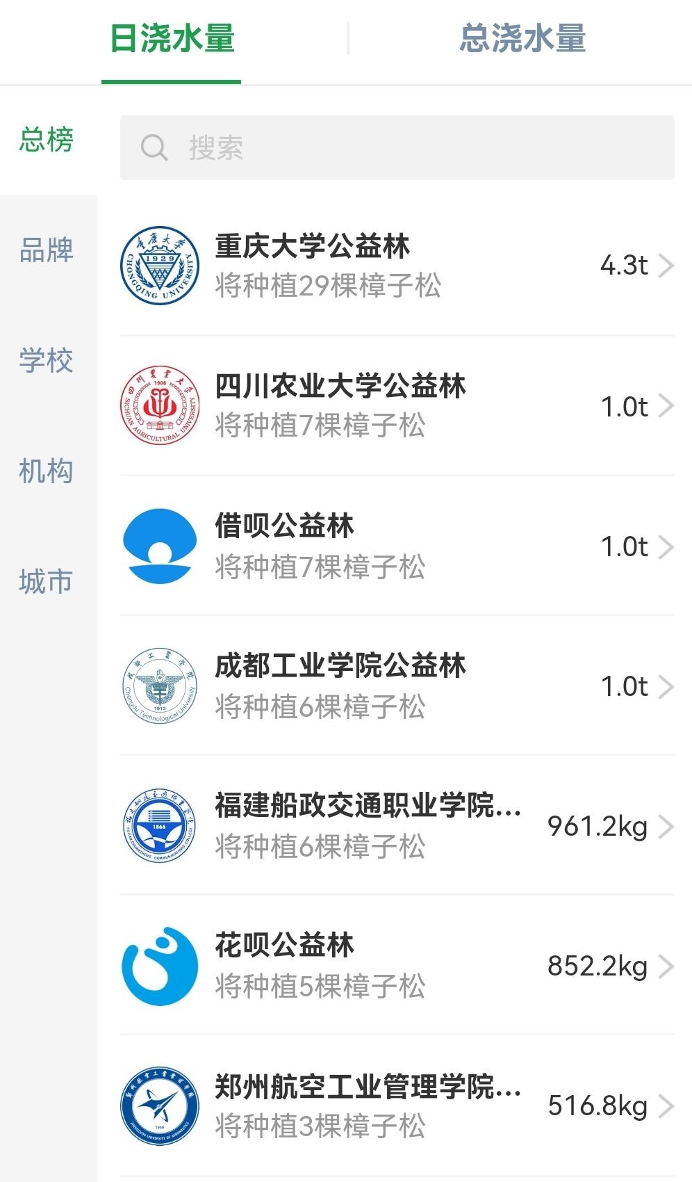 图为公益林日浇水量排行榜
