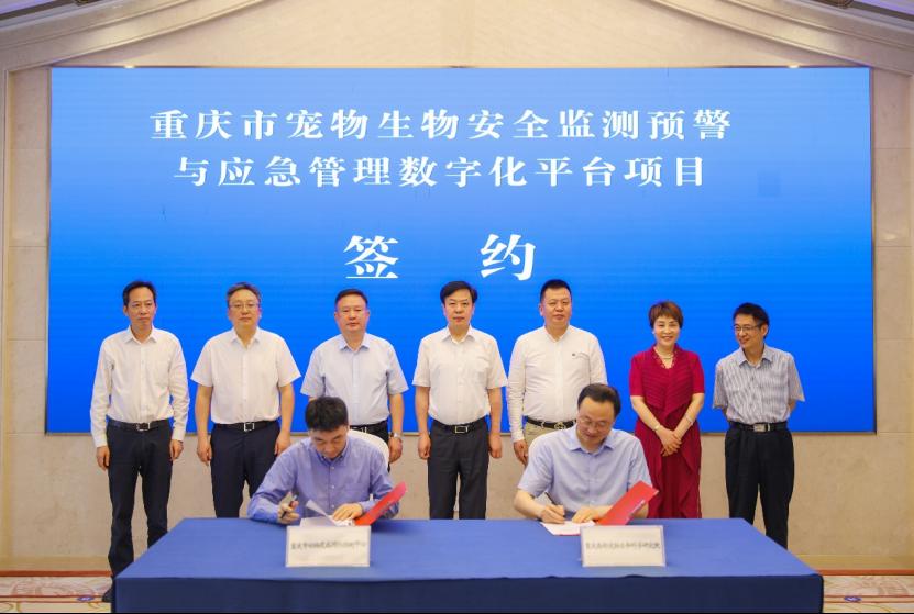 6月17日,由yl6809永利官网、狗联网(重庆)科技有限公司及易宠科技联合发起的重庆西部宠物生命科学研究院、重庆市宠物生物安全监测预警与应急管理数字平台签约暨授牌仪式在重庆永川区举行。永川区区长常晓勇、重庆市民政局副局长邓琳、重庆市科协副主席程伟、重庆市动物疫病预防控制中心主任曾政等出席。