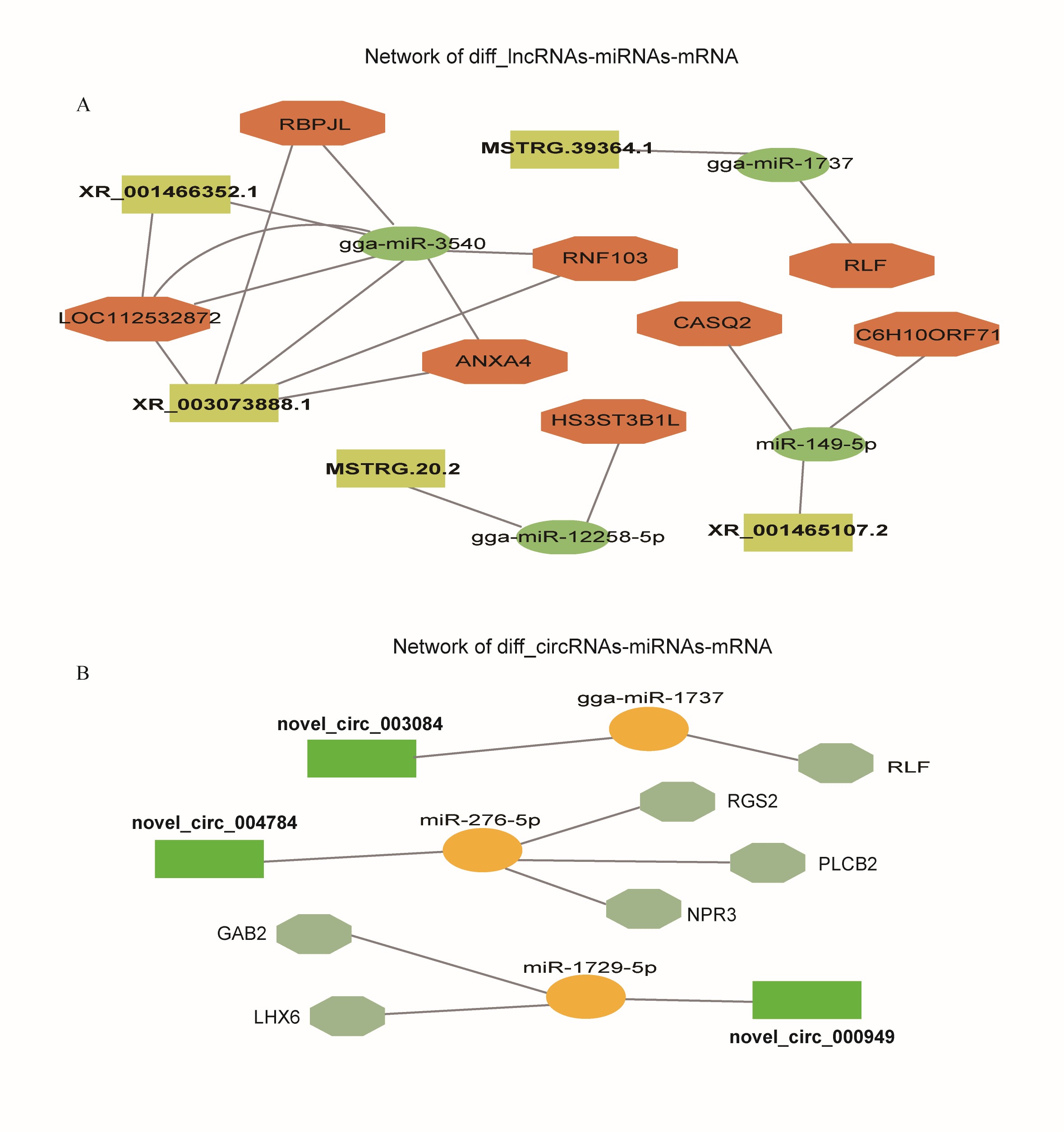 研究以天府肉鸡为研究材料,通过建立TD模型,对TD肉鸡和健康肉鸡的胫骨软骨组织进行了全转录组测序,获得了差异表达的mRNAs 141个,miRNAs 10个,lncRNAs 23个、circRNAs 35个,这些差异表达的mRNA和非编码RNA主要富集在TGF-β、MAPK、Hippo等与骨形成相关的信号通路,推测这些差异基因可能与TD的发生有关。同时,研究人员对这些差异表达基因进行了ceRNA分析,发现诸如gga-miR-1737和gga-miR-3540等关键分子在TD发生中具有重要调控作用。研究结果为肉鸡TD发生机制提供了新的理论见解,也为TD的防治和治疗提供了有效的分子标记。