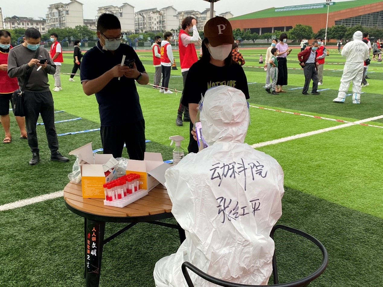 “因成都校区疫情防控需要,现向全校征集志愿者,主要开展核酸检测扫码工作。欢迎居住校内、年龄在50岁以下、身体健康的老师加入我们……”集结令一下,张红平、严太明、赵小玲、刘贺贺、陈德芳、孙文强、赵柳兰、王林杰、李利、黄小丽……等一批老师积极踊跃报名教工志愿者。“没有别的,就想去做点力所能及的事”承担了一上午扫码工作的张红平教授擦了擦脸上的汗珠说。从教师到志愿者,从教室到核酸检测点,改变的是工作和场地,不变的是为人师表的责任和担当。