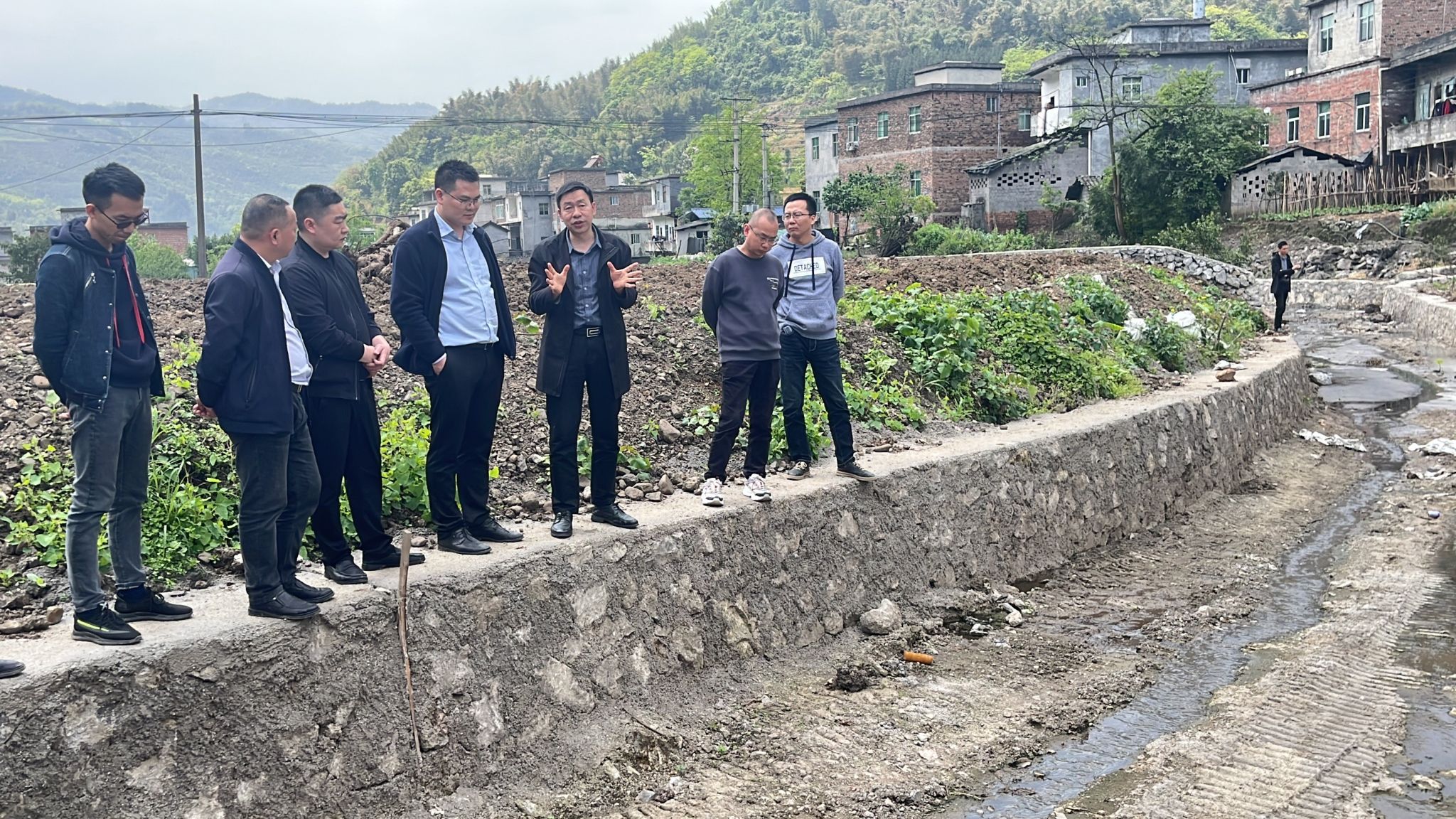 白林一行在筠连县畜牧水产业发展服务中心主任李俊、镇舟镇党委副书记、镇长余强,宜宾市筠连生态环境局总工程师代羽等人的陪同下,沿镇舟镇景阳沟实地了解镇舟镇金钟村、景阳村畜禽养殖面源污染情况,查看了利用畜禽粪便沼液种植牧草、蔬菜、黄精等的情况。