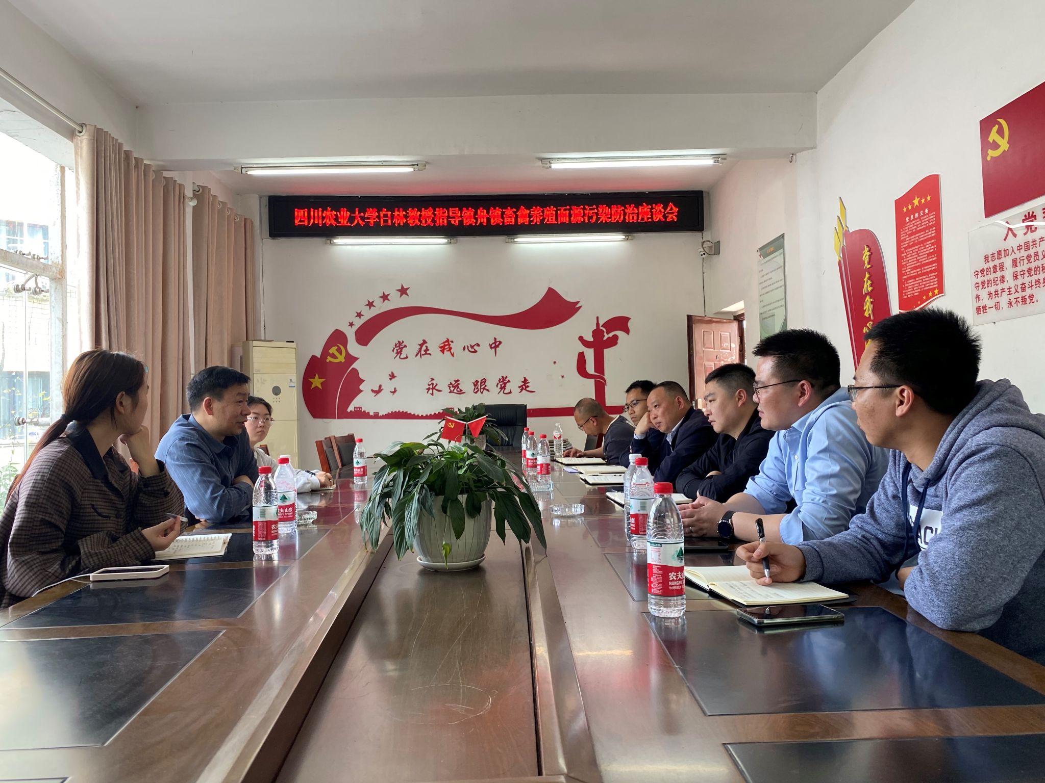在镇舟镇人民政府会议室,白林就如何做好镇舟镇畜禽养殖面源污染防治,与镇舟镇副镇长陈廷才、赵顺、生态环境保护股股长周日宇,和代羽、李俊、何云波等人进行了交流座谈,白林详细了解了镇舟镇各村猪牛养殖存栏、粮油经农作种植等情况,并询问了镇舟镇畜禽养殖面源污染防治工作存在的问题。白林就镇舟镇禽养殖面源污染防治现状提出了具体建议如完善污水管网和粪污存贮设施、推广节水养殖、做好养殖制肥规划、按照环保标准做好沼液储存梯级设计、完善粪肥循环利用补贴政策和排污收费政策、建立粪肥还田台账,强化还田污染监管。