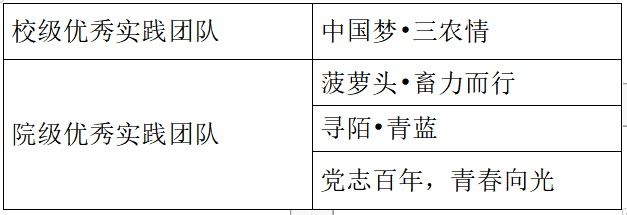 经学生自愿申请,学院进行资格审查并根据《2021年暑期社会实践评优细则》评审,拟评选出以下团队分别获评校(院)级社会实践优秀团队,现公示如下: