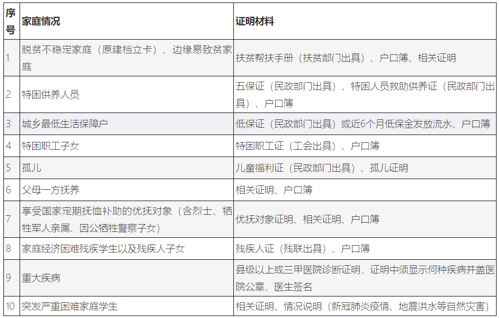 特别困难:主要指学生及其家庭没有能力提供其在校期间学习和生活基本支出。